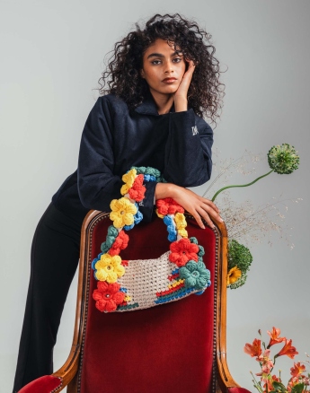 Née en 2024 dans l’intimité d’un jardin familial, GUALDONI Paris Wien incarne une vision contemporaine du crochet et de la broderie. Fondée par Théo et Anakim Gualdoni, la marque puise son inspiration dans les savoir-faire transmis par leur grand-mère pour sculpter des pièces uniques où chaque détail raconte une histoire. Confectionnées en France, les créations GUALDONI allient artisanat local et esthétique actuelle. Déjà repérés par Marie Claire, Gala et Madame Figaro, nous avons sélectionné pour vous trois de leurs pièces signatures : le sac fleuri La Revanche réalisé à la main, la cagoule Balaclava (bleu et vert) entièrement crochetée, et la veste Colette, vert bouteille, ornée d’un col Claudine.