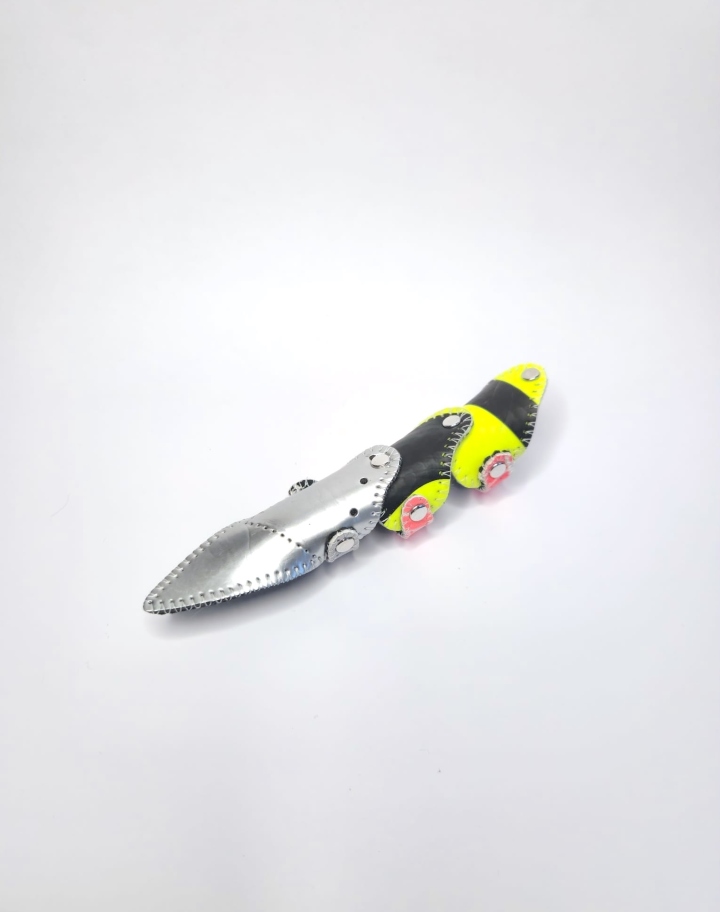 Bijou articulé en textile revalorisé.