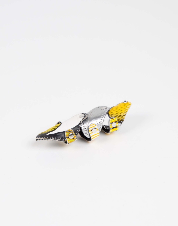 Bijou articulé en textile revalorisé.