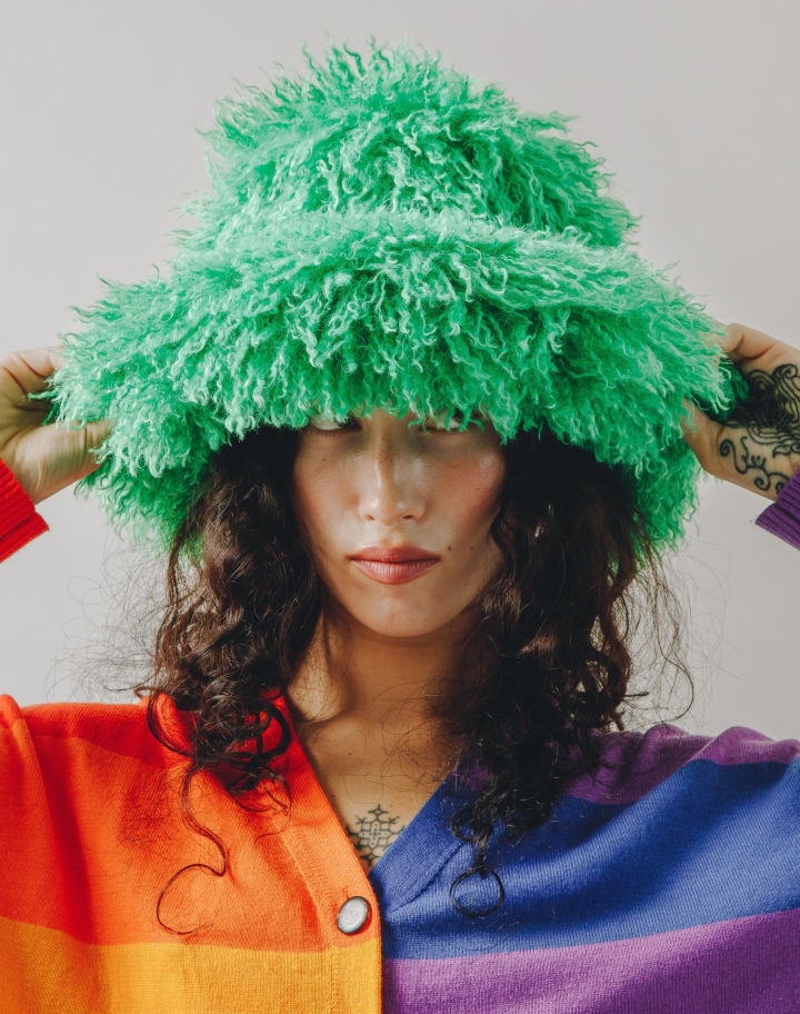 Bob en fausse fourrure à poil long et bouclée imitation mouton/ agneau de Mongolie, doublé en coton.