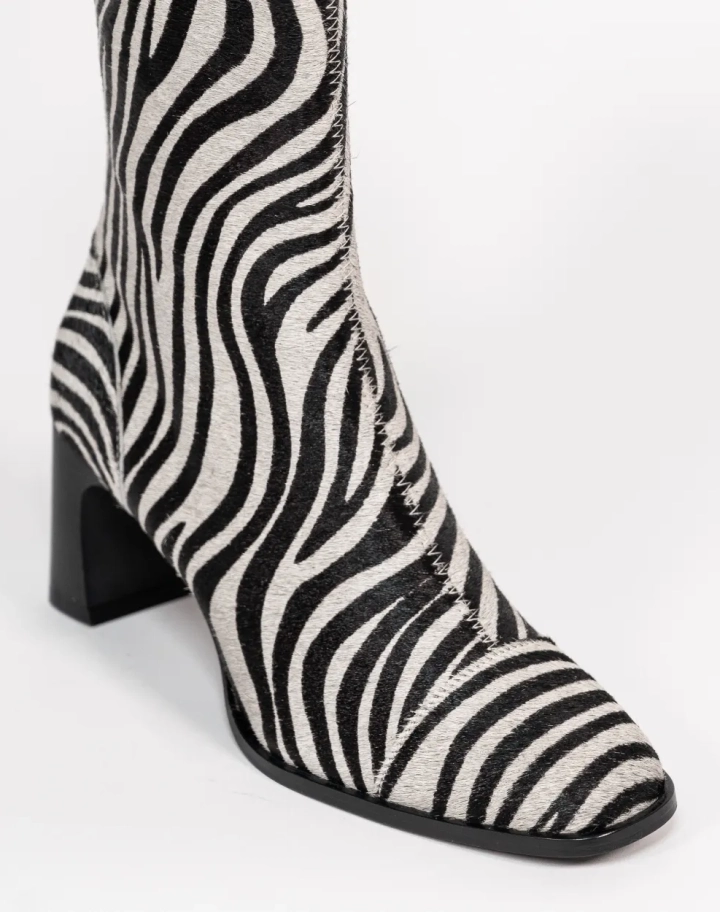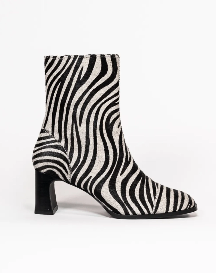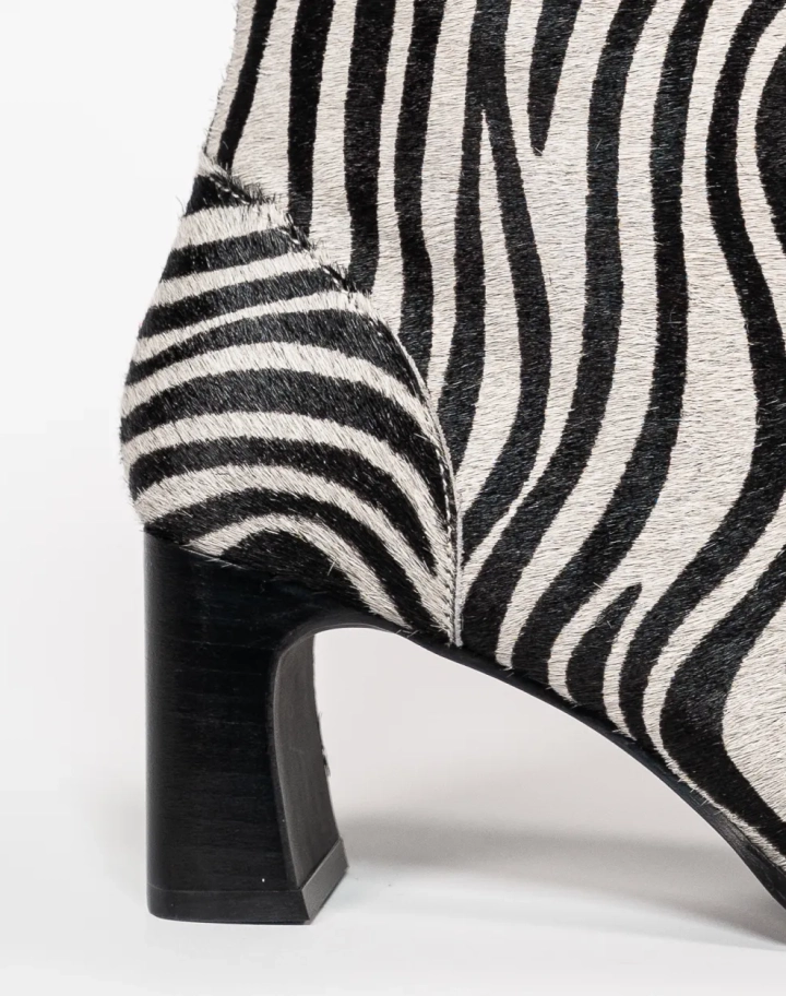 - Extérieur en cuir noir pony zèbre, doublure et semelle intérieure en cuir, semelle extérieure en gomme