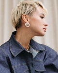 Boucles d’oreilles qui mélangent les perles de culture et les coquillages, dans les tons bleu, gris, beige.