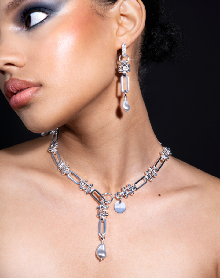 Boucles d'oreille pour oreille percées chaine plaquée Argent 925 à Paris garanti d'origine 100% métal précieux recyclé et ornés d'une perle de verre poire baroque grise.
