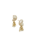 Maxi Boucles d’oreilles en coquillage asymétrique avec un joli strass de cristal de Swarovski en coloris champagne.