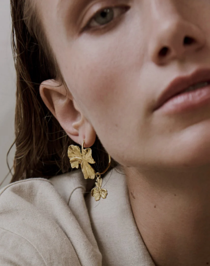 Les boucles d’oreilles Oréade se déploient en une composition de fleurs stylisées, aux volumes généreux et aux lignes fluides.