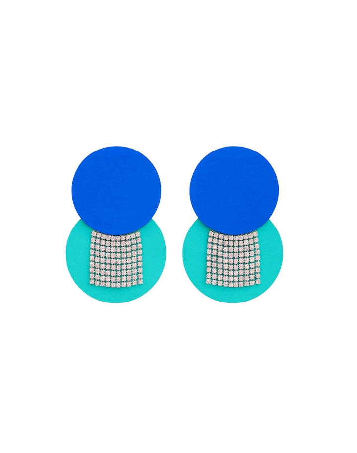 Découvrez les boucles d’oreilles Shiny Pearls, déclinées en deux nuances de bleu (bleu marine et bleu ciel) et rehaussées de strass roses scintillants.