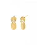 Tel un éclat précieux échoué sur la plage, ces boucles d’oreilles dévoilent de délicats médaillons ovales, subtilement ornés d’un effet guilloché, façonné en plaqué or 750 millièmes.