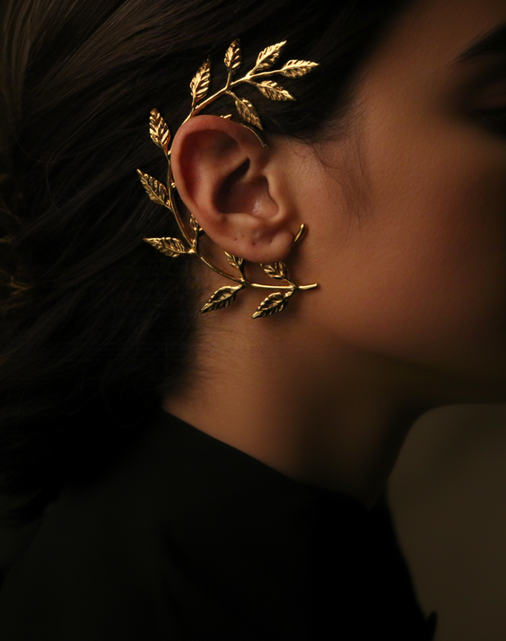 Le Slide-me Hear your power. est un bracelet d’oreille réversible aux feuilles de laurier.