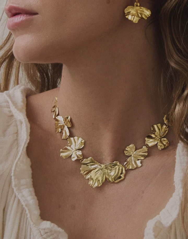 Chaque élément se déploie comme une pétale figée dans le mouvement, jouant entre texture et fluidité. L’enchaînement des