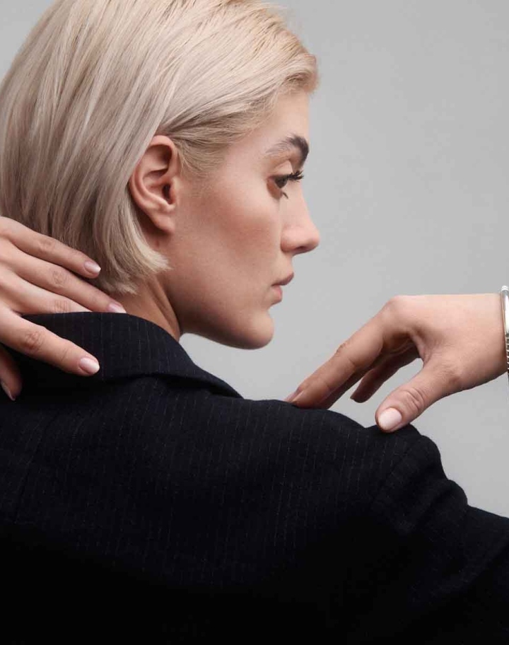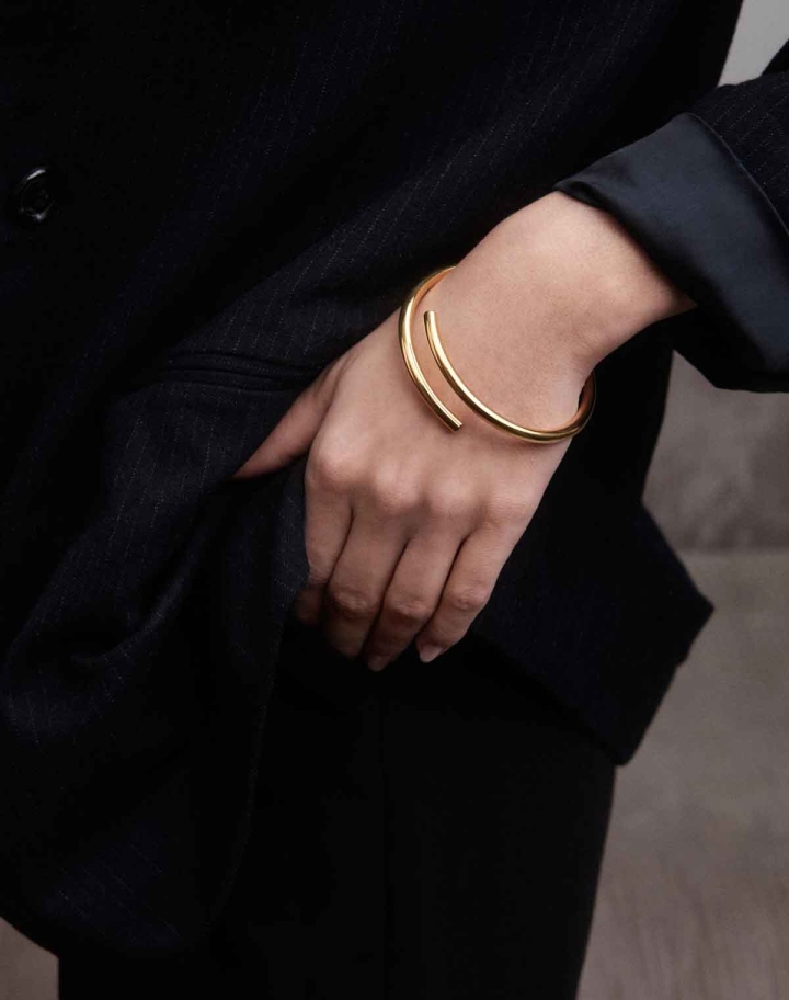 Fabriqué à partir d’un fil d’argent rond de 4mm de diamètre. Les extrémités sont sculptées pour reprendre l’aspect d’un strass, d’où la collection tire son nom. Le bracelet est entièrement poli.