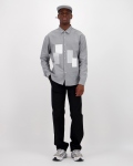 Chemise oxford base LAUREN avec une personnalisation PATCHWORK réalisée à la demande à partir de chute de tissu oxford.