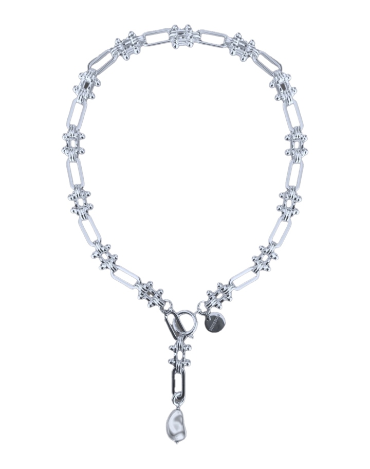 Collier plaquée Argent 925 à Paris garanti d'origine 100% métal précieux recyclé et ornés d'une perle de verre poire baroque grise.