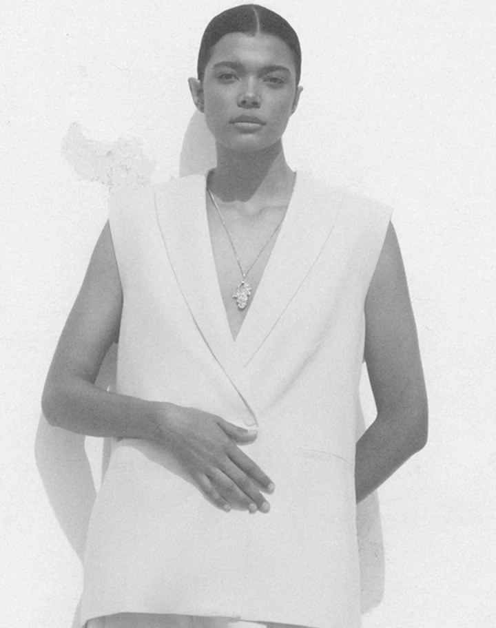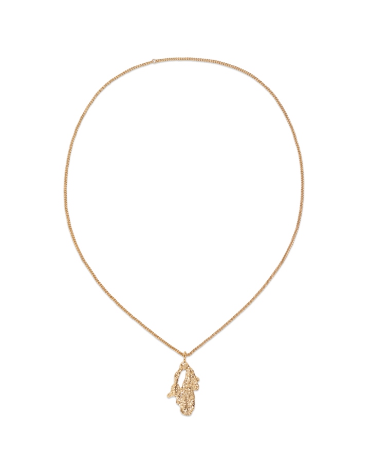 Le collier Irène présente un pendentif sculptural aux reliefs organiques, modelé entièrement à la main.