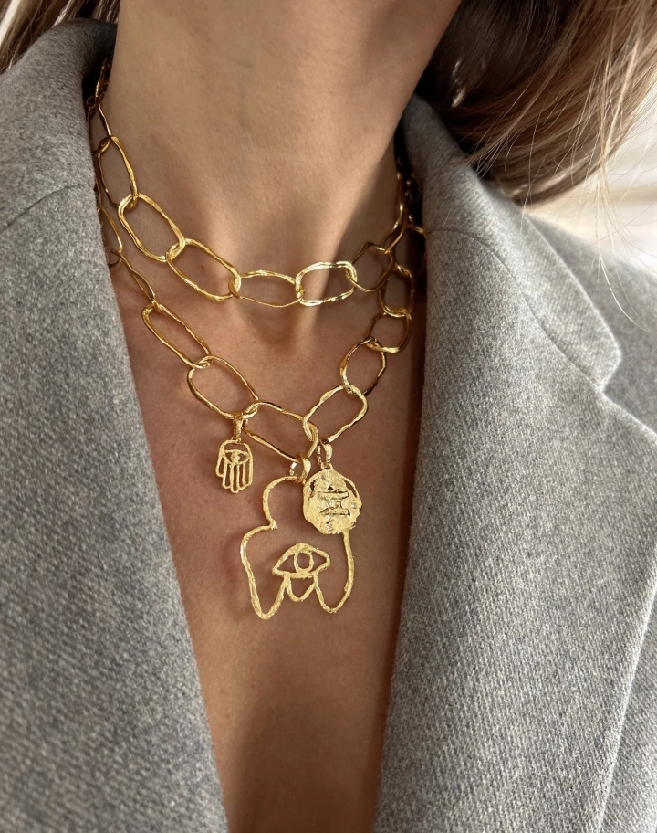 Doré à l’or recyclé 24 carats (3 microns) sur base laiton, le collier allie artisanat éthique, raffinement et