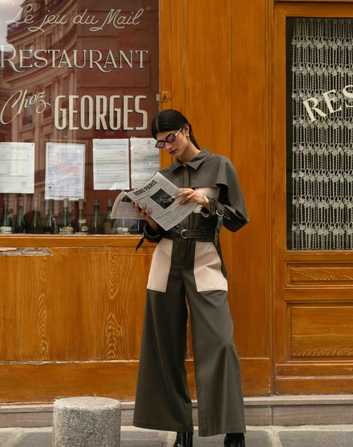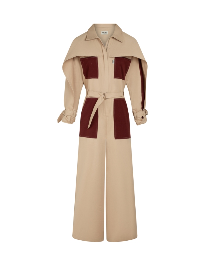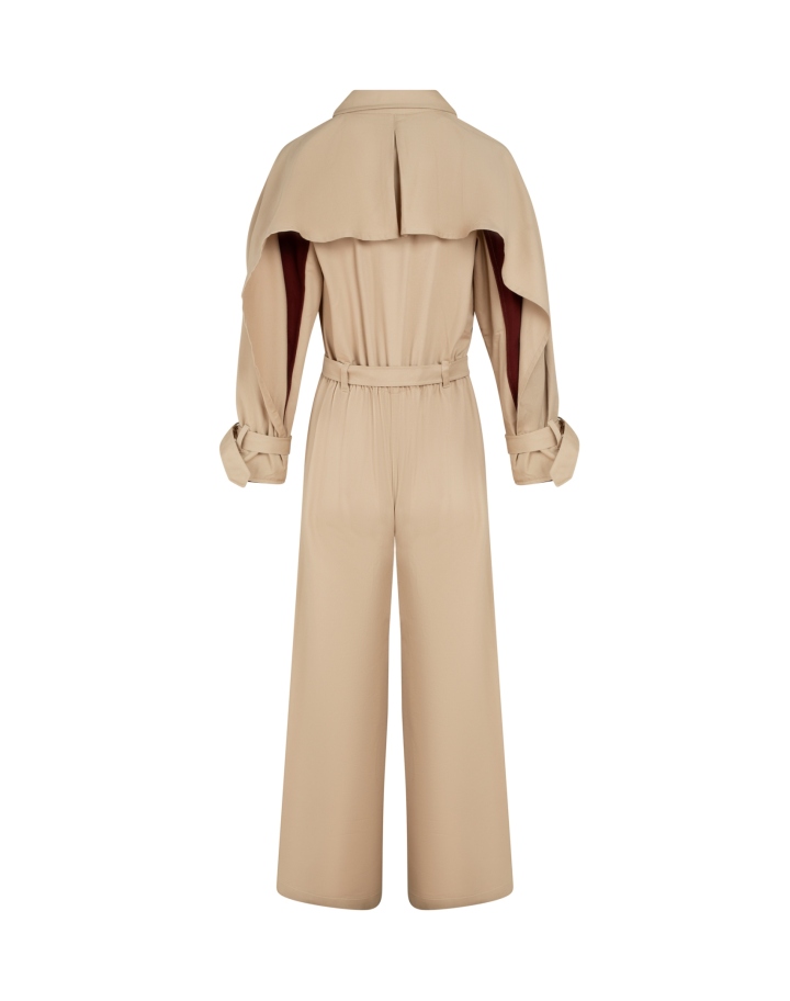 La combinaison Jacqueline est une pièce forte, à mi-chemin entre trench structuré et cape fluide.