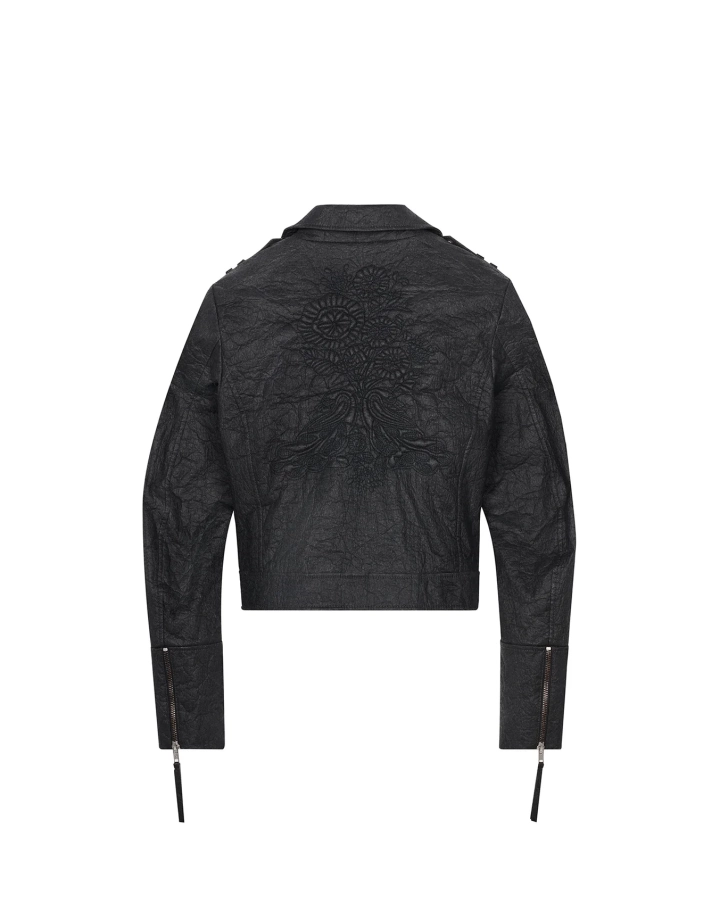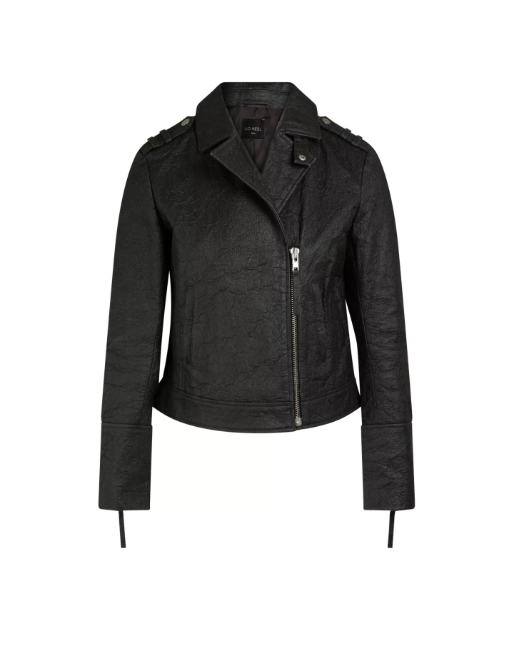 La veste perfecto Ananas Charcoal est l’une des pièces phares du vestiaire LO NEEL. Tout d’abord, les broderies emblématiques, inspirées par le savoir-faire ancestral et l’artisanat indien, sont imprimées dans la matière pour apporter une touche d’originalité à la traditionnelle veste perfecto. Aussi, la fibre d’ananas Pinatex, utilisée pour réaliser ce cuir végétal, lui donne cet aspect froissé original et moderne. Egalement, il se porte cintré pour une tenue chic sur une robe, ou déclinez-le en prenant une à deux tailles au-dessus pour un look oversize hyper tendance.