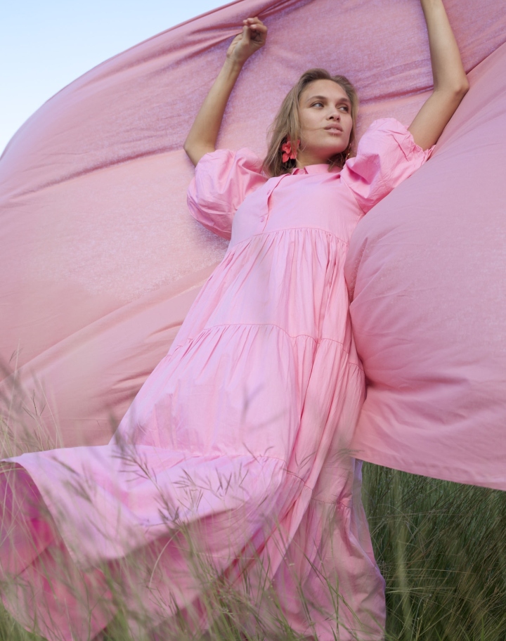 La robe Flora, pièce emblématique de Celeste. Avec ses formes douces et volumes subtils, elle incarne une féminité aérienne et un confort absolu. Léger comme une caresse, son voile de coton fluide donne l'impression de ne rien porter… et pourtant, la présence du tissu donne une allure particulière.