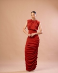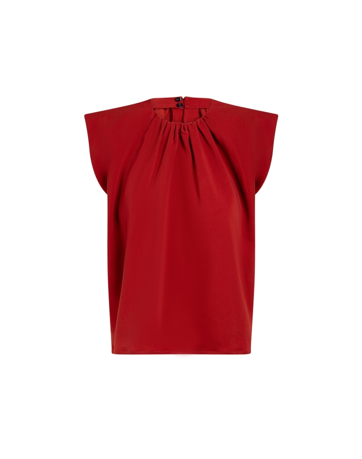 Le top Aïda, avec son tombé fluide et son plissé délicat à l’encolure, offre une attitude sophistiquée. Son col légèrement relevé, crée un jeu de volumes qui enveloppe délicatement le buste. Les épaules sont subtilement structurées et affirment le port avec une finesse incomparable.