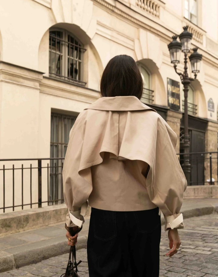 Anita, c’est le trench revisité en version courte, graphique et affirmée, avec une touche workwear assumée.